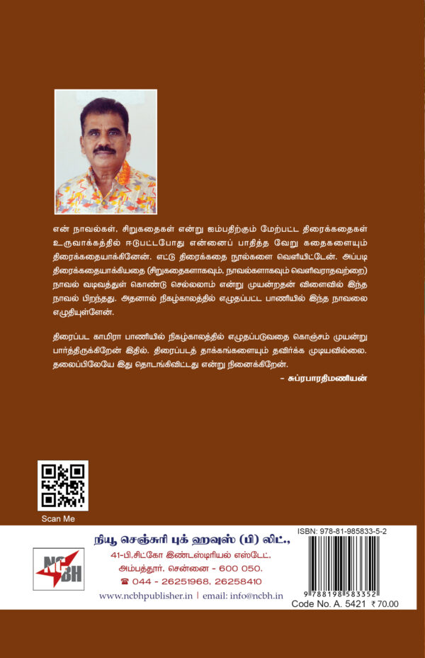 என் நாவல்கள், சிறுகதைகள் என்று ஐம்பதிற்கும் மேற்பட்ட திரைக்கதைகள் உருவாக்கத்தில் ஈடுபட்டபோது என்னைப் பாதித்த வேறு கதைகளையும் திரைக்கதையாக்கினேன். எட்டு திரைக்கதை நூல்களை வெளியிட்டேன். அப்படி திரைக்கதையாக்கியதை (சிறுகதைகளாகவும், நாவல்களாகவும் வெளிவராதவற்றை) நாவல் வடிவத்துள் கொண்டு செல்லலாம் என்று முயன்றதன் விளைவில் இந்த நாவல் பிறந்தது. அதனால் நிகழ்காலத்தில் எழுதப்பட்ட பாணியில் இந்த நாவலை எழுதியுள்ளேன்.