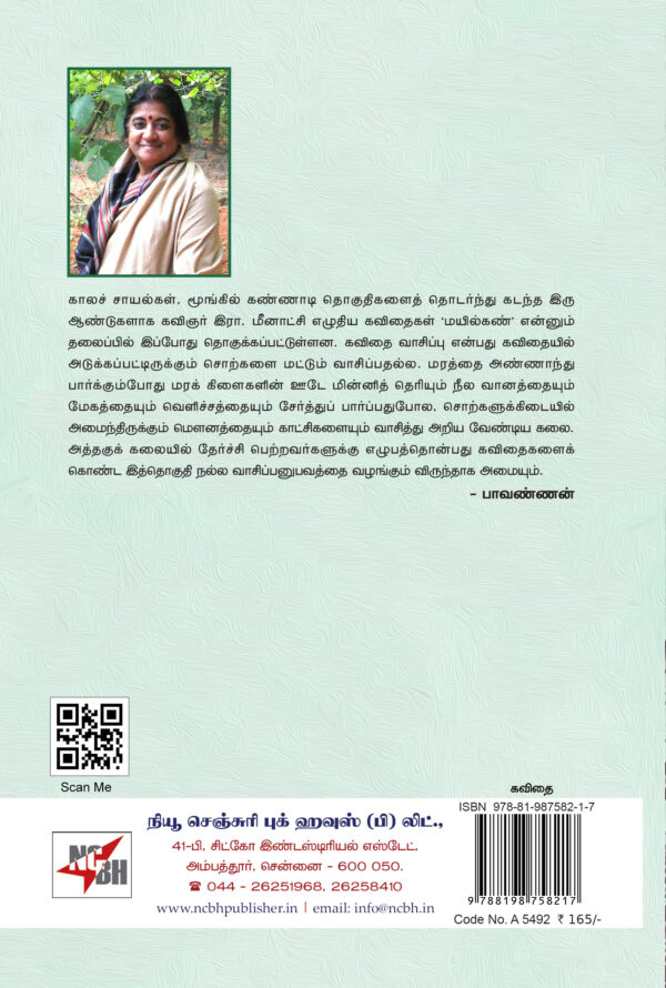 | Book Name : Mayilkan Regional Name : மயில்கண் Author : கவிஞர் இரா.மீனாட்சி Edition : 1st Edition ISBN : 978-81-987582-1-7 Category : Poetry Binding : Paper Binding Language : Tamil Publishing Year : 2025 Pages : 112 Code No : A5492 |